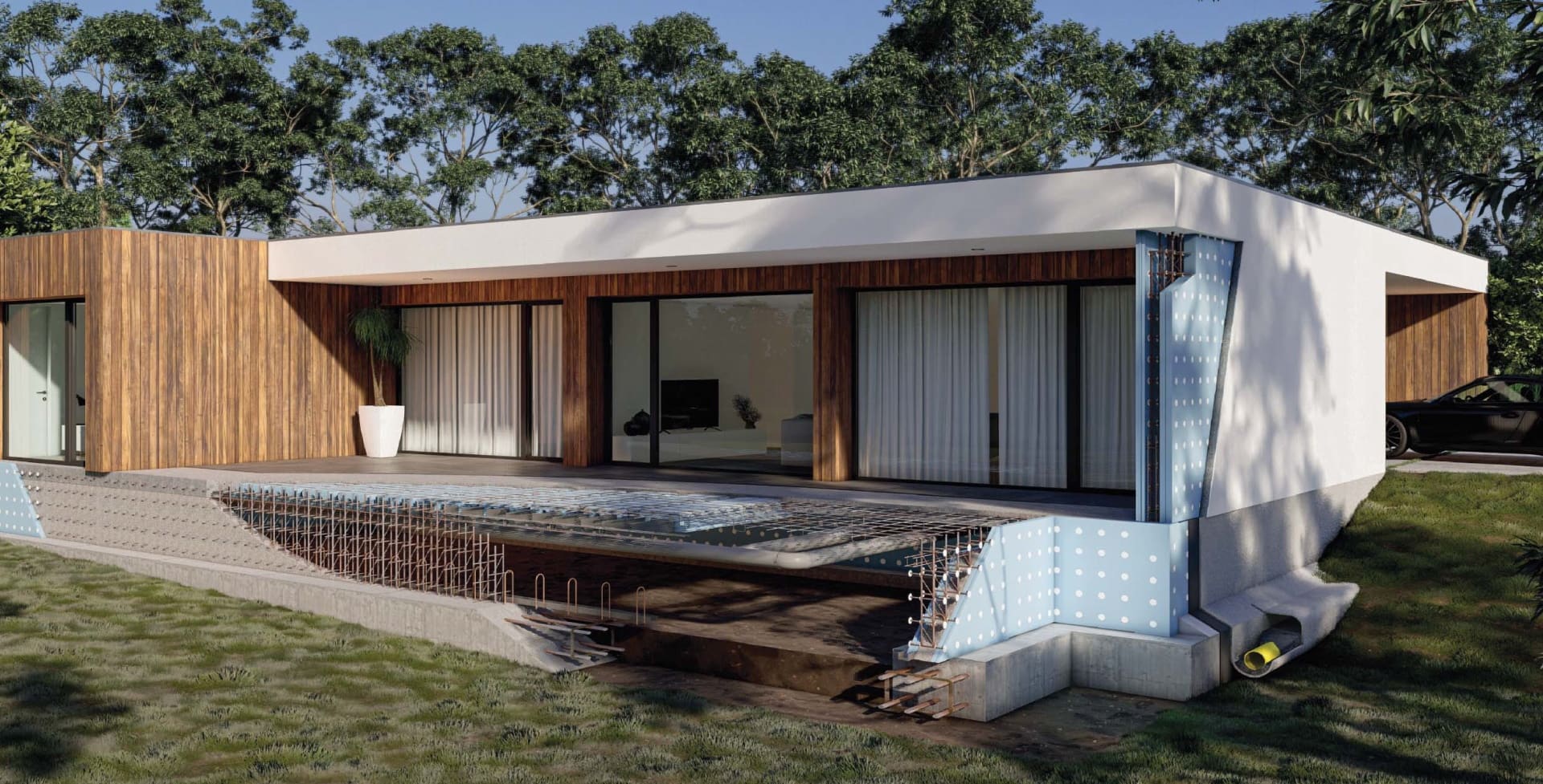 A flexibilidade do nosso sistema, permite integrar facilmente estruturas de aço (pesadas e leves) e estruturas de postes e vigas, com nossos painéis, prontos para serem preenchidos com betão. A nova tendência de casas com um bom isolamento e economizadoras de energia, é um objetivo fácil de atingir com a PLASTBAU®!